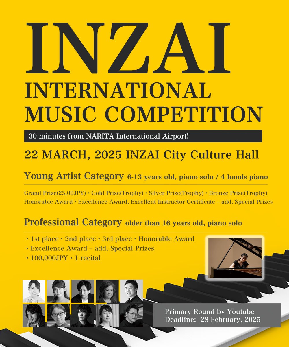 The 1st INZAI MUSIC FESTIVAL was held as the concert of 20th anniversary of the city's incorporation in 2016, and got much of audience to 6 concerts. In 2023, we will held the 2nd festival In the season of dancing cherry blossoms "sakura", and we hope to meet various artists in the city from across the world!